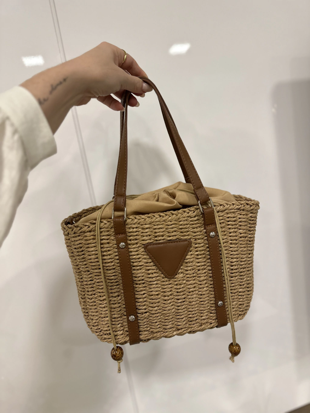 - Modelo: Bolsa média na palha de ráfia. Possui alças de ombro e alça longa em couro ecológico.