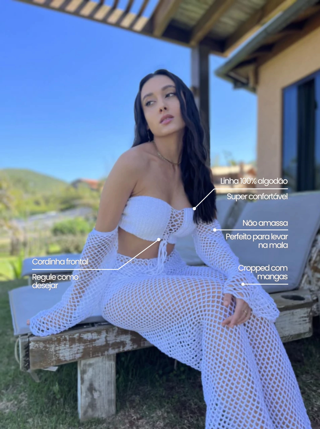 - Detalhes: Para complementar seu look use com a saia Mari. 100% feito manualmente. Confeccionado em linha 100% algodão, garantindo um toque macio e confortável. Peça perfeita para levar na mala, pois não amassa.